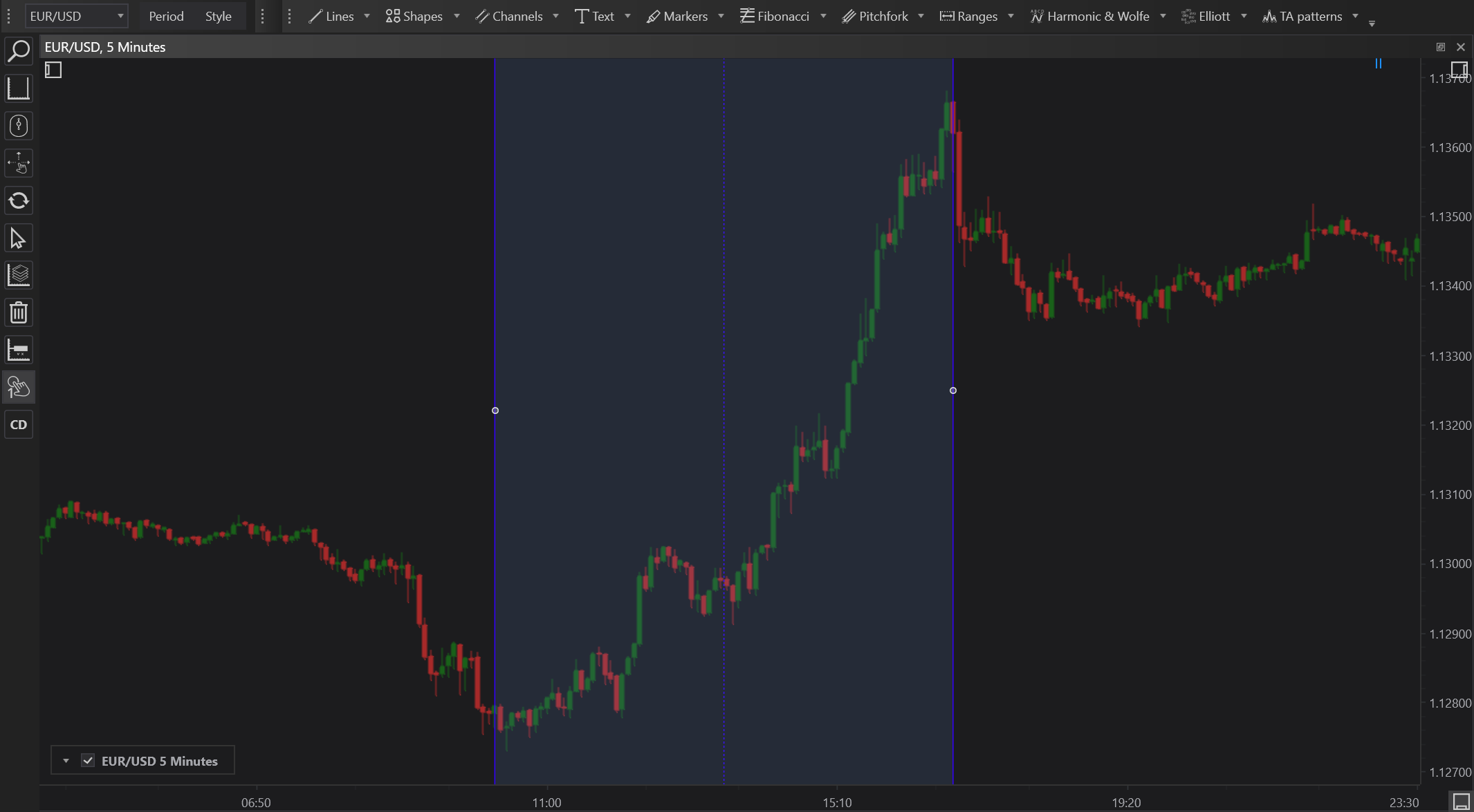 - Initial Placement: Click on the chart at the point that marks a significant time you want to analyze, such as the release of an economic report.