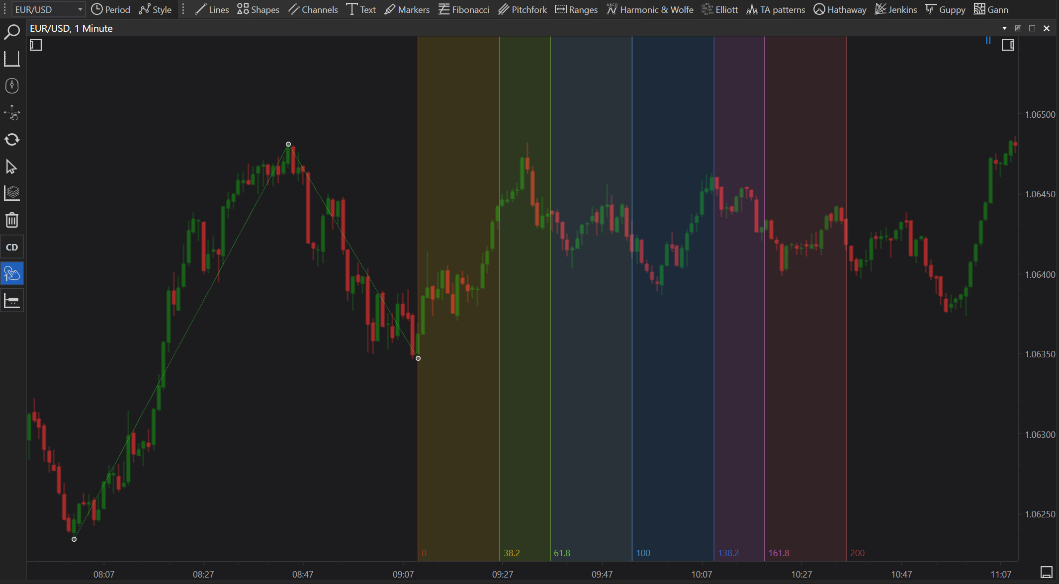 - Select the Tool: Access the Fibonacci Trend-Based Time tool from the drawing tools menu in FinStudio.