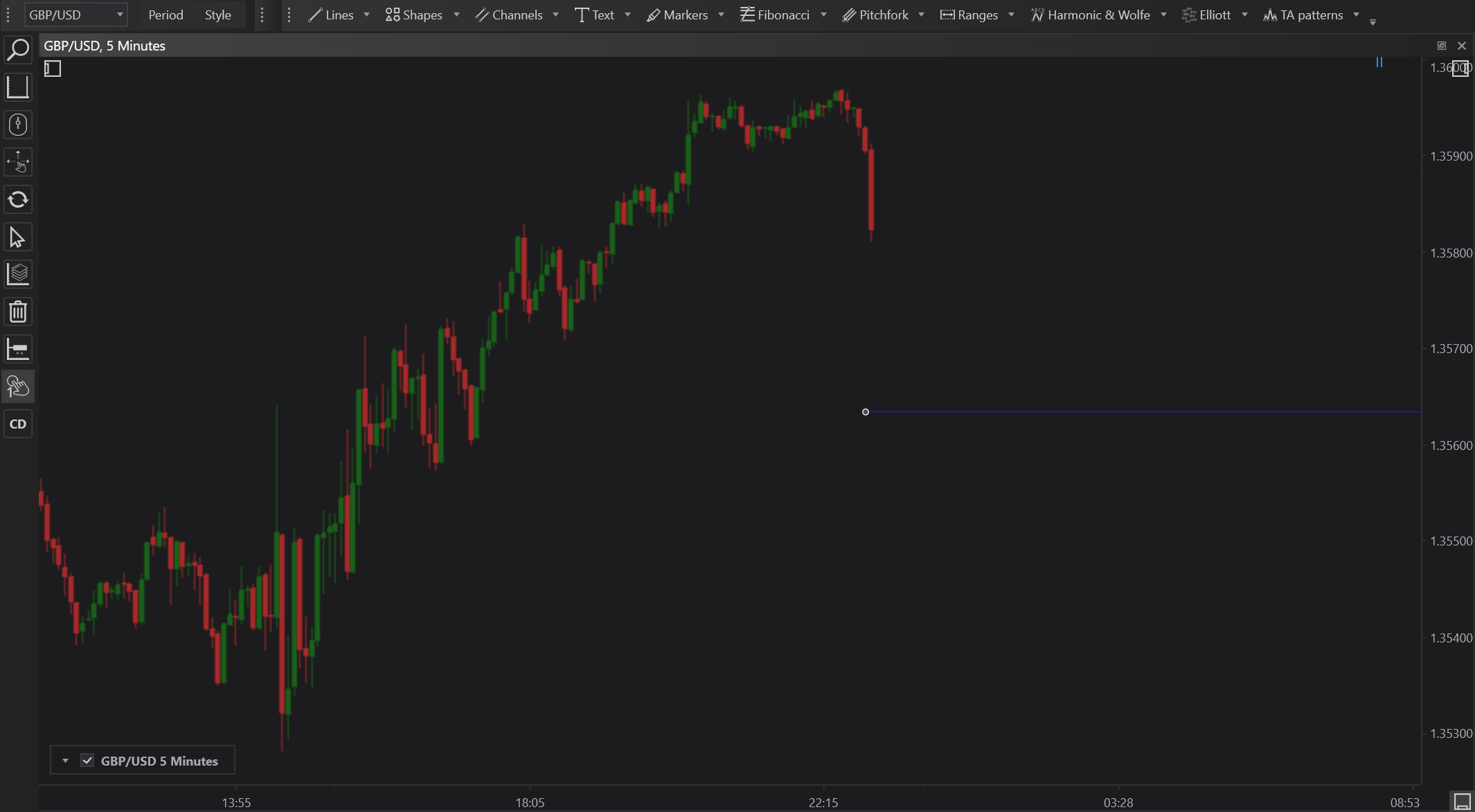 - Select the Horizontal Ray tool from the drawing tools menu.