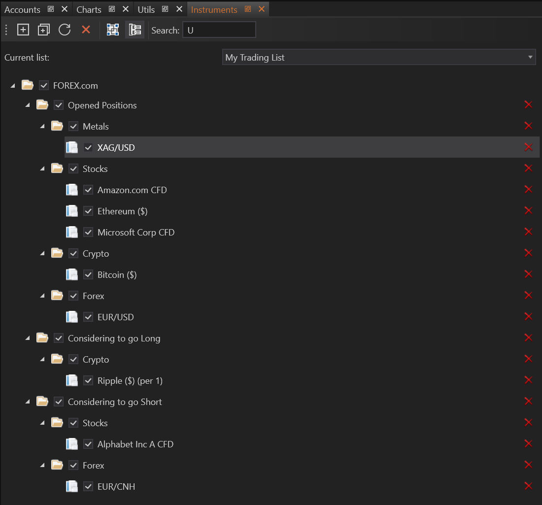 Instrument lists offer a flexible way to personalize and organize financial instruments into tailored lists and groups. To begin, users need to create a new instrument list, which serves as a foundation for further customization and categorization according to their preferences. This capability allows users to create a highly personalized and efficient trading environment.