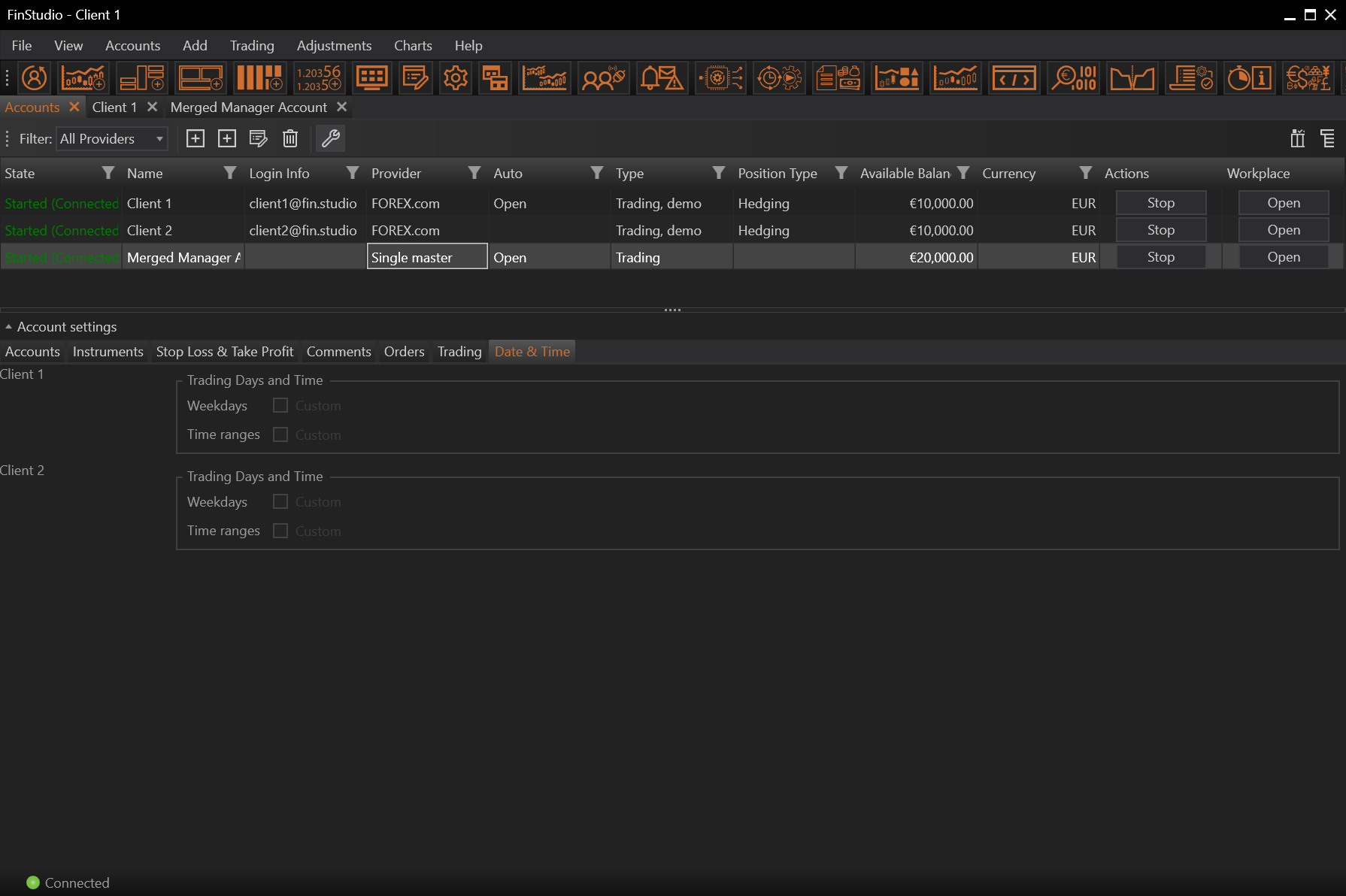 This will open trades on client accounts only during selected Weekdays or Time ranges.