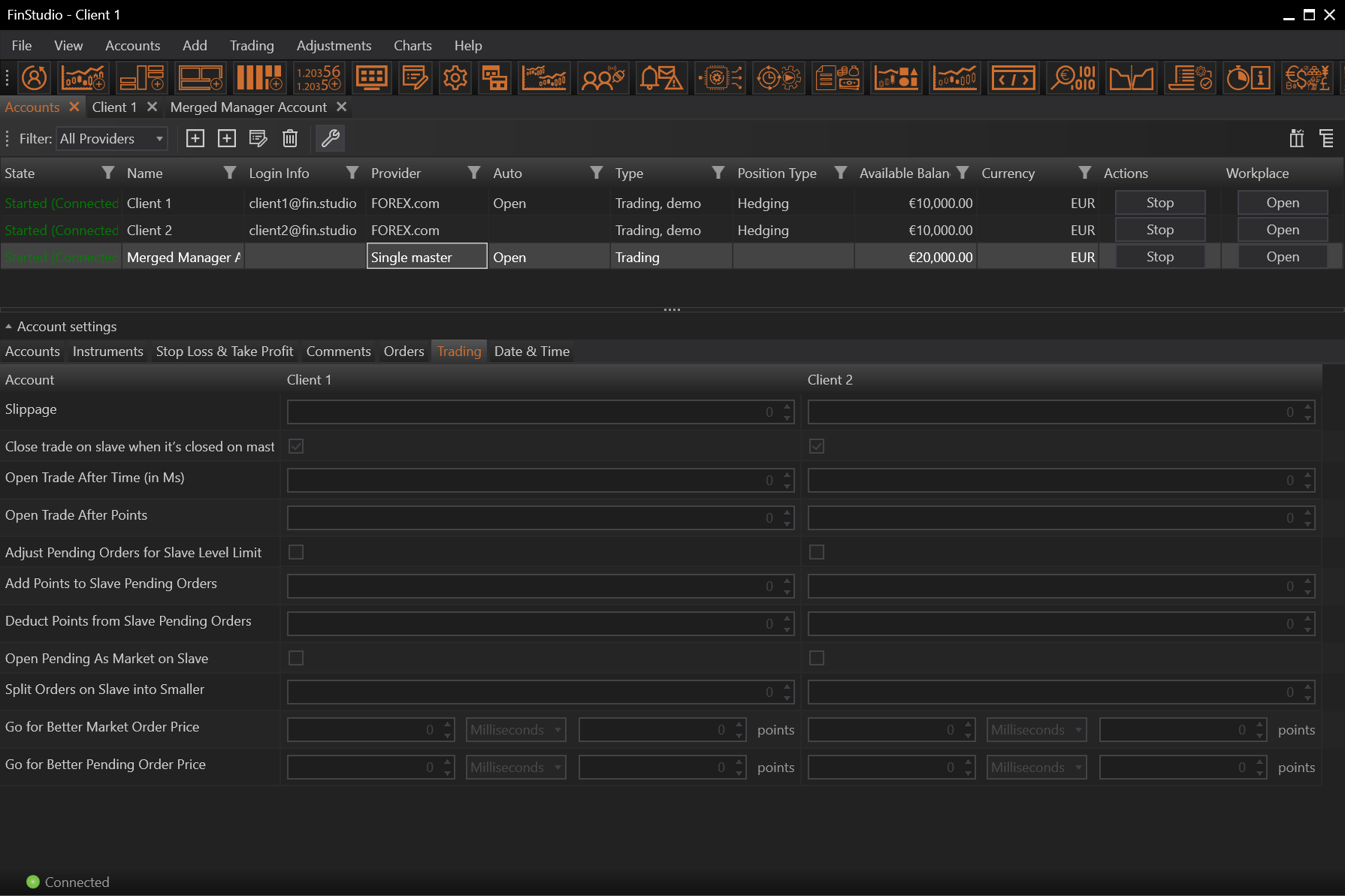 This will set a slippage – tolerance range at which trade on the client's account will still be executed if the price on the client's account is different than on the merged account.