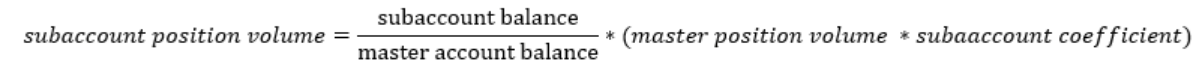 The calculation for this is straightforward: the subscriber's account balance divided by the provider's account balance, multiplied by the provider's trade volume and the set coefficient.