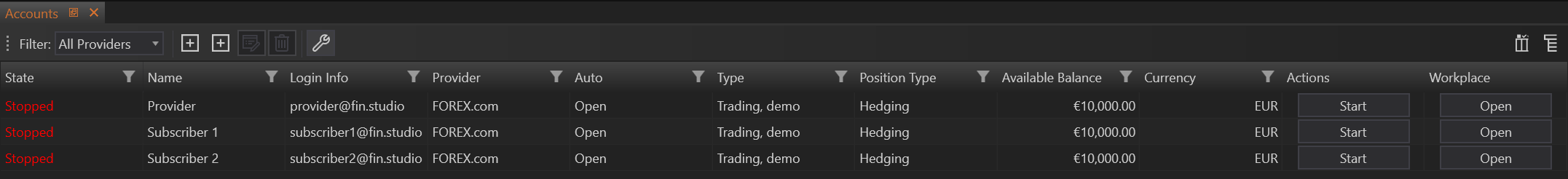 Once the provider account is created, subscriber accounts need to be added.