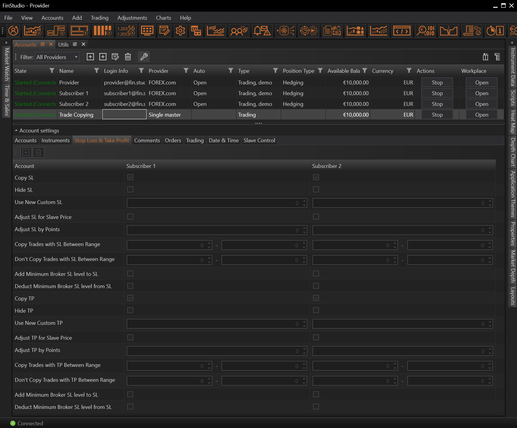 If checked it will copy Stop Loss from provider to subscriber. If not checked, Stop Loss is ignored and not sent to the subscriber's account.