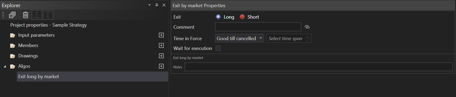 Comment: Allows adding a comment to the market exit order for reference or tracking purposes.