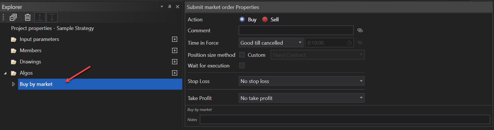 When submitting a market order, various properties can be customized to fit the trader's requirements: