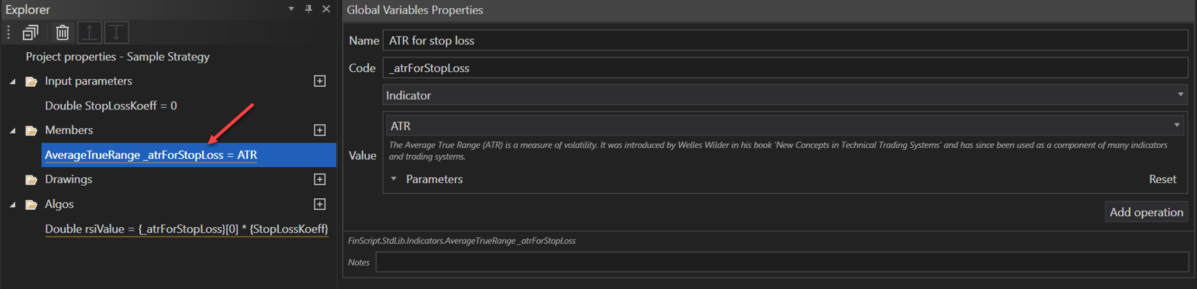 - Name: ATR for stop loss