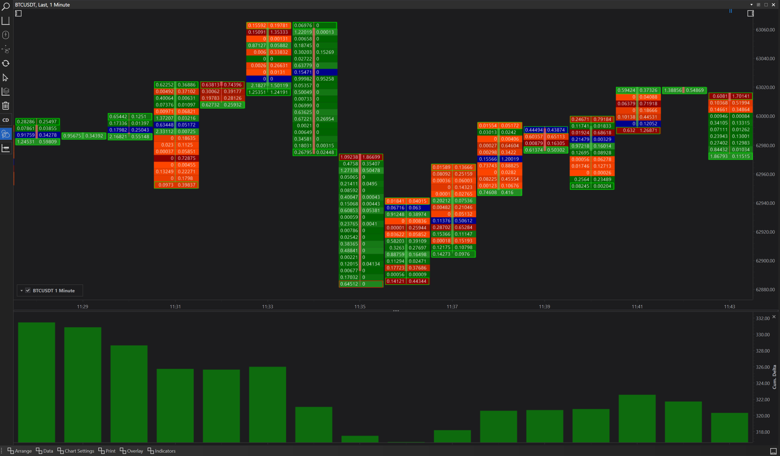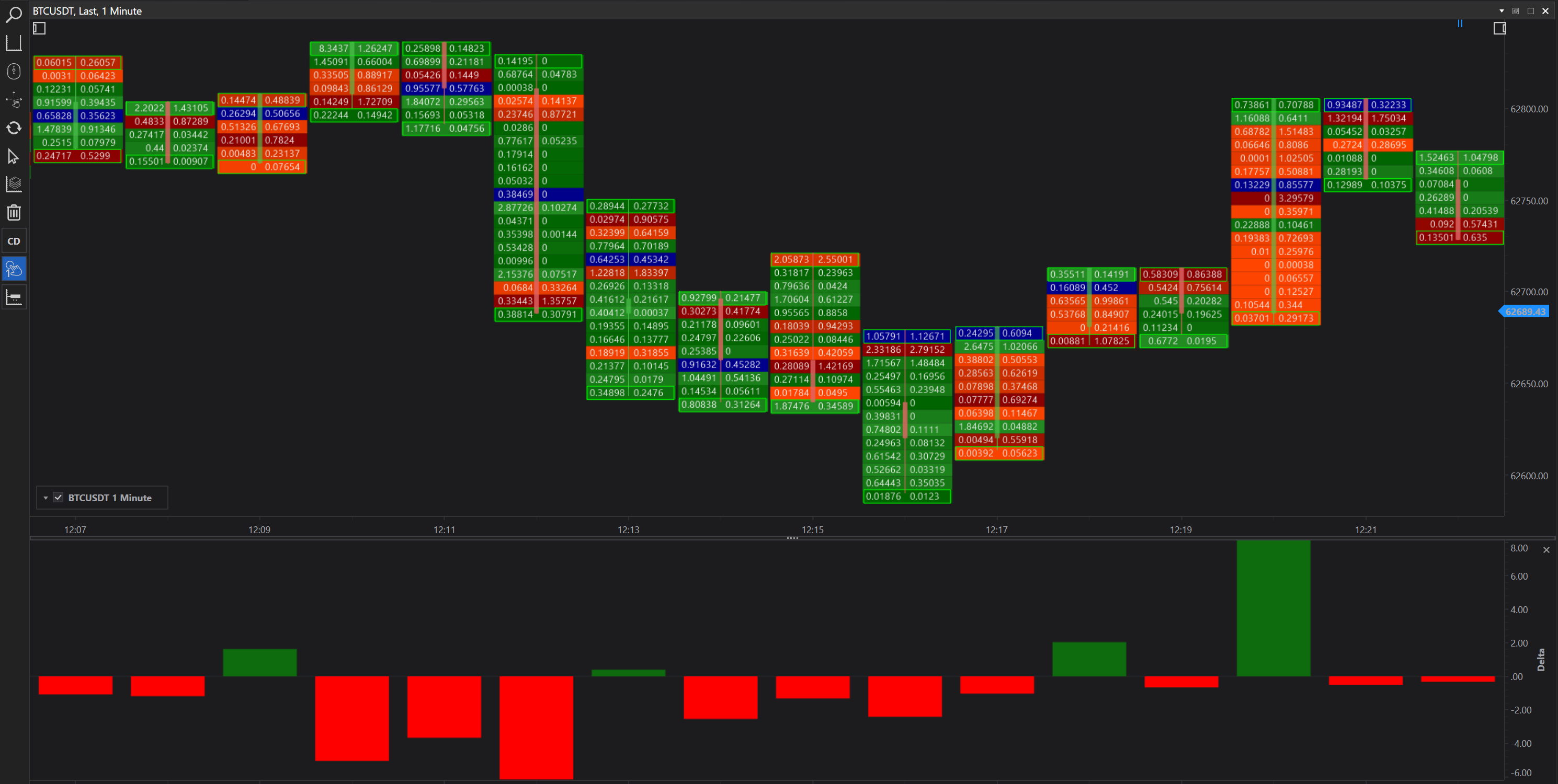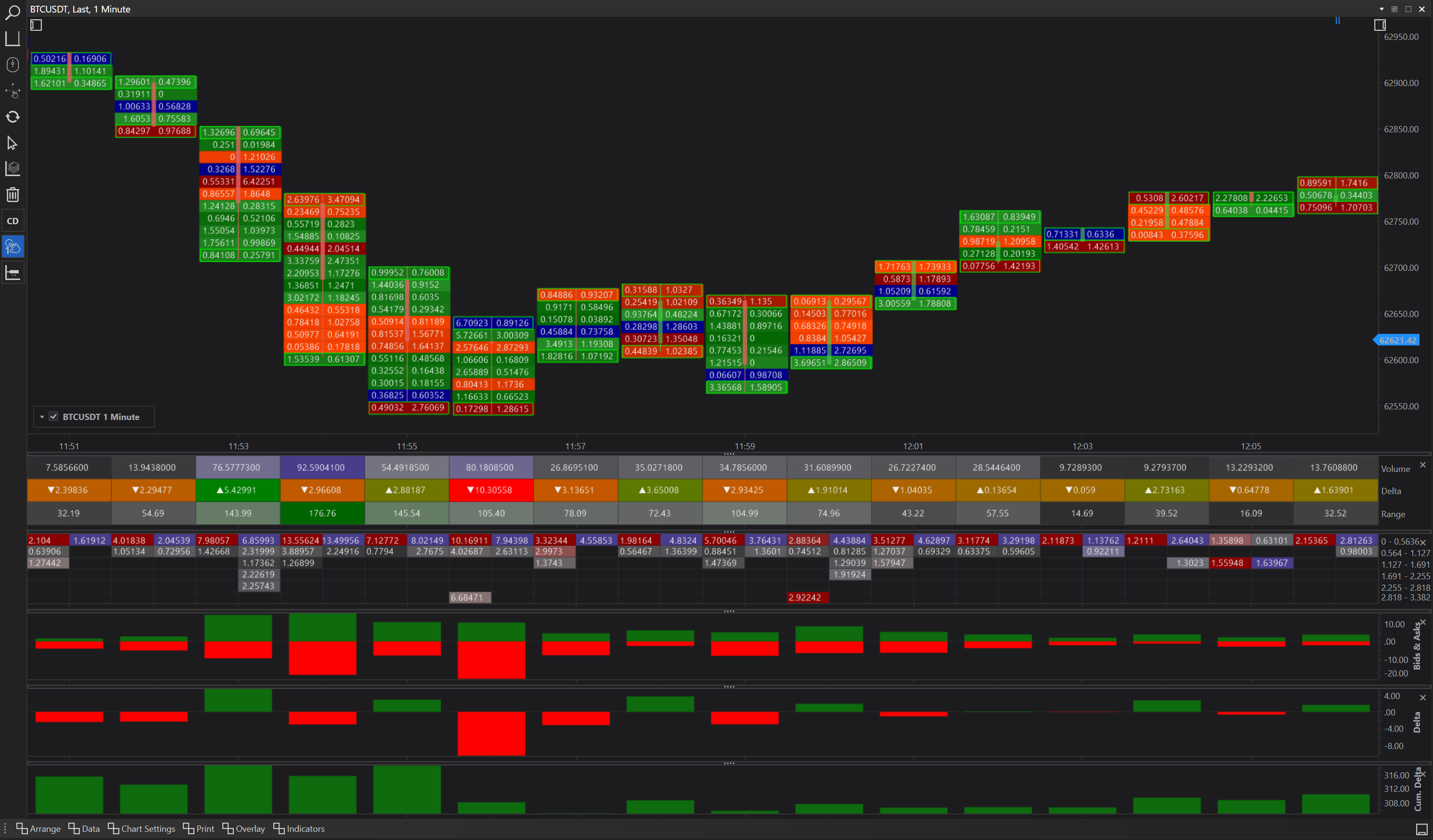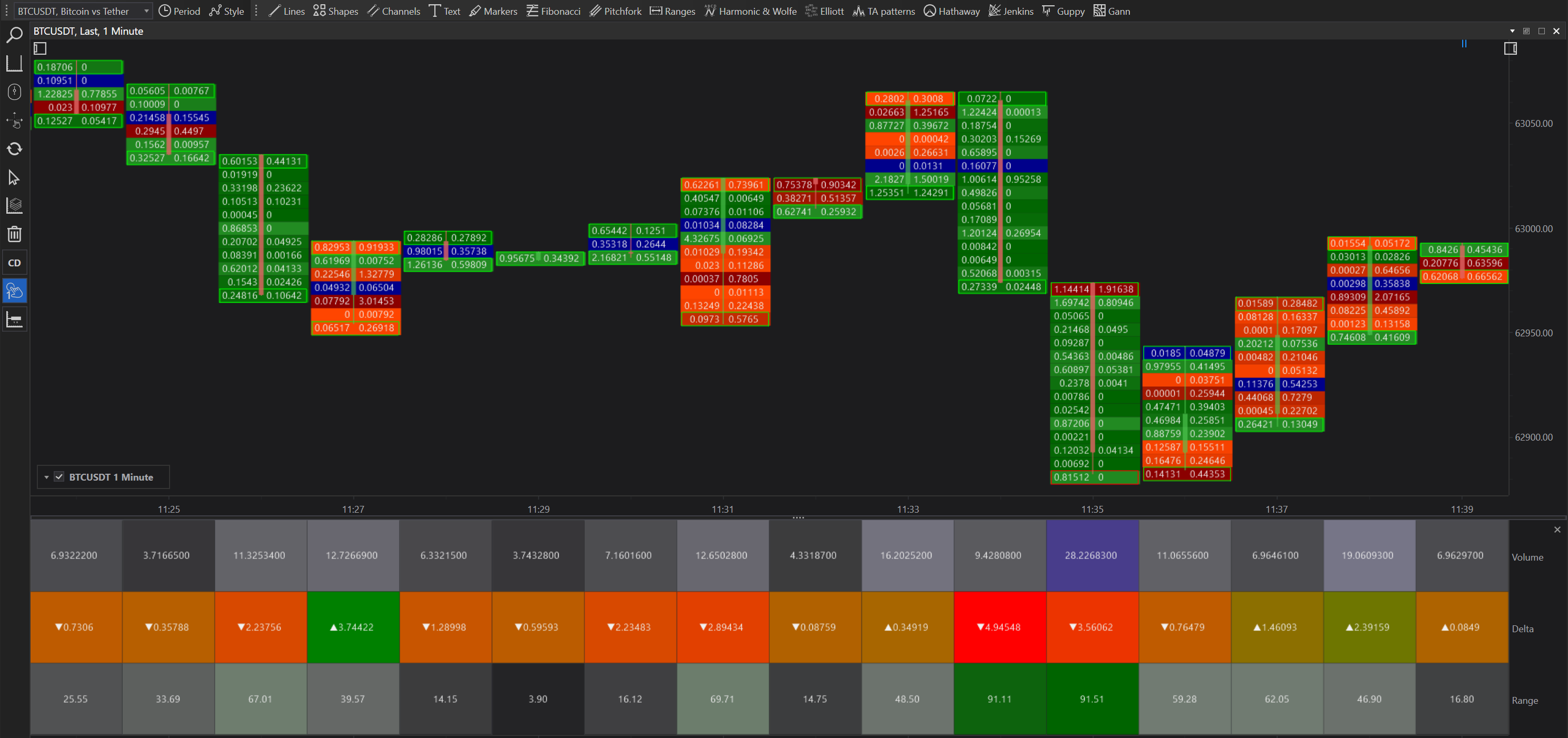 Complementary Analysis: Each of these indicators complements the data shown in cluster charts by providing additional layers of analysis. For example, while cluster charts can show where trades are concentrated, delta and cumulative delta can indicate whether these trades are predominantly buys or sells.