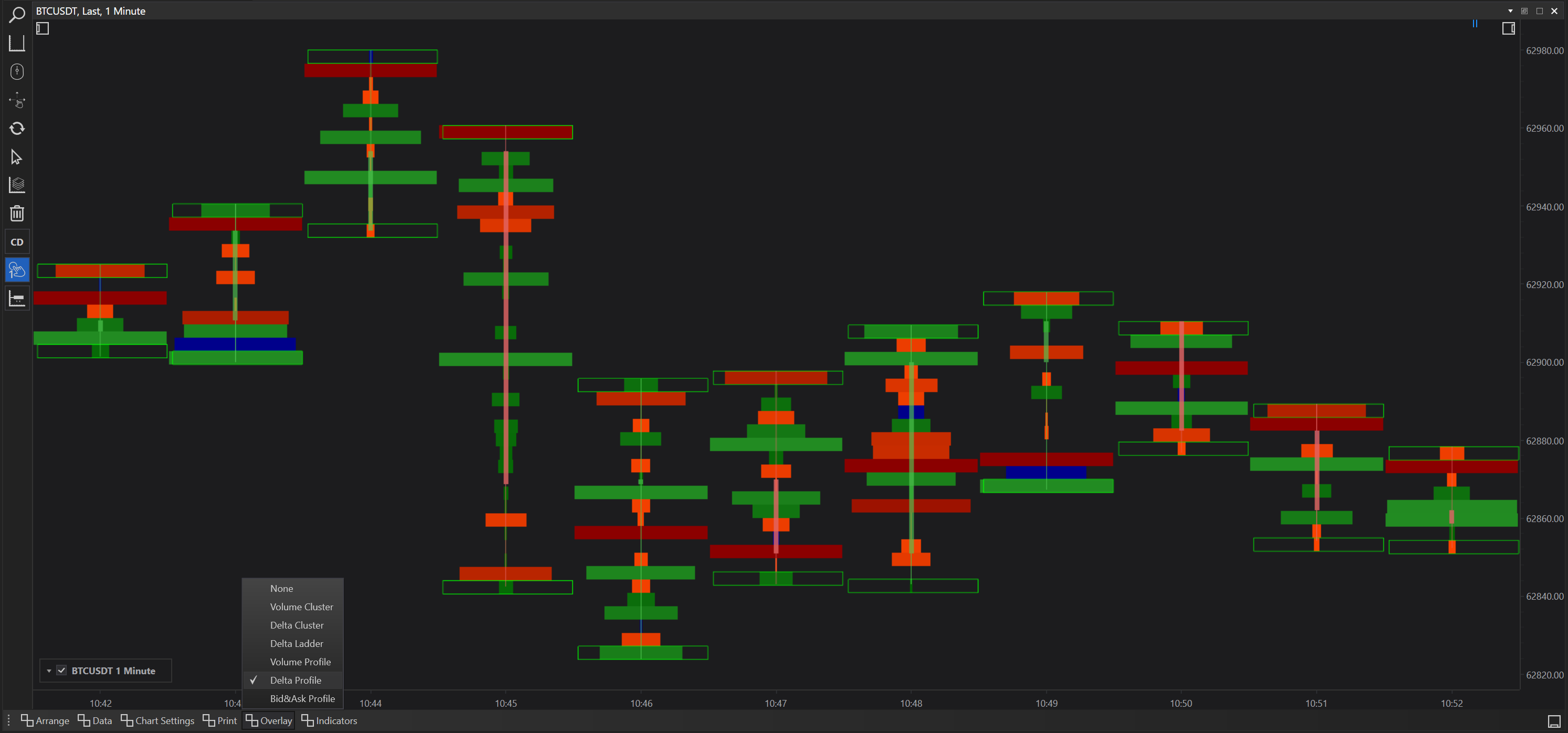 Strategic Decision Making: Different overlays can be used depending on the trading scenario. For example, during high volatility, a Delta Profile might be more insightful to determine the direction of market pressure, whereas, in a range-bound market, the Volume Profile could help identify consolidation zones.