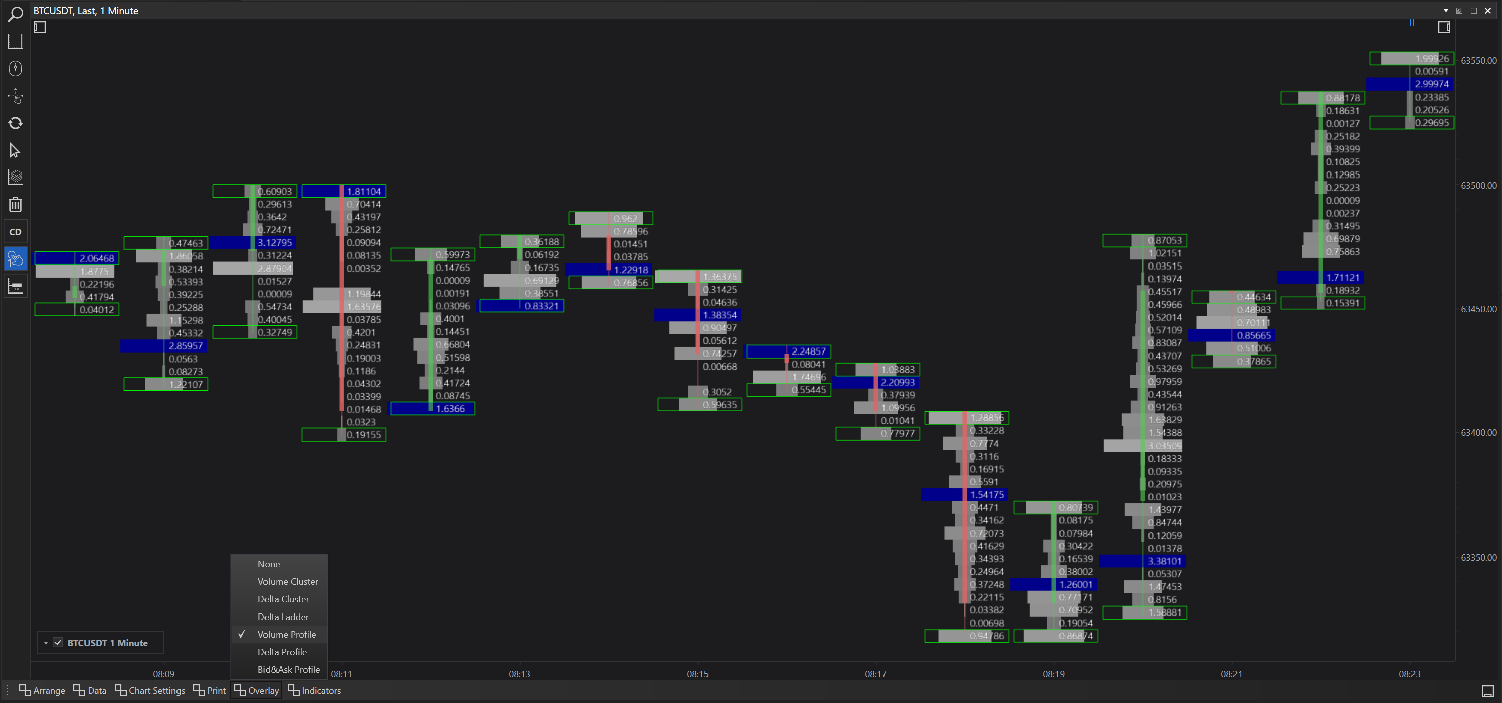 - Delta Profile: Similar to Volume Profile but focuses on the net buy/sell volume, highlighting dominant market forces.