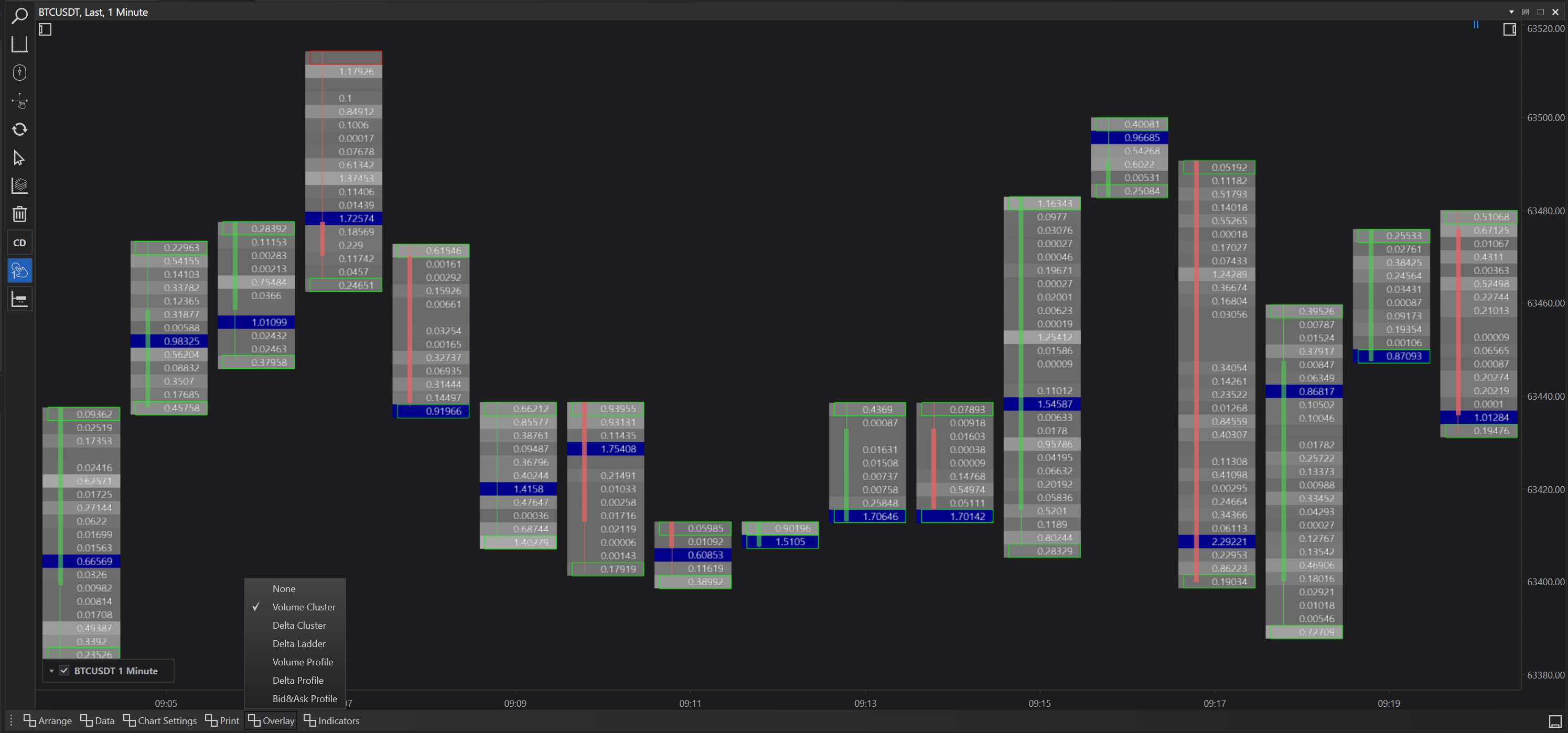 The real power of FinStudio’s Cluster Charts comes from the ability to combine different prints and overlays, allowing traders to tailor their analytical approach to fit specific scenarios: