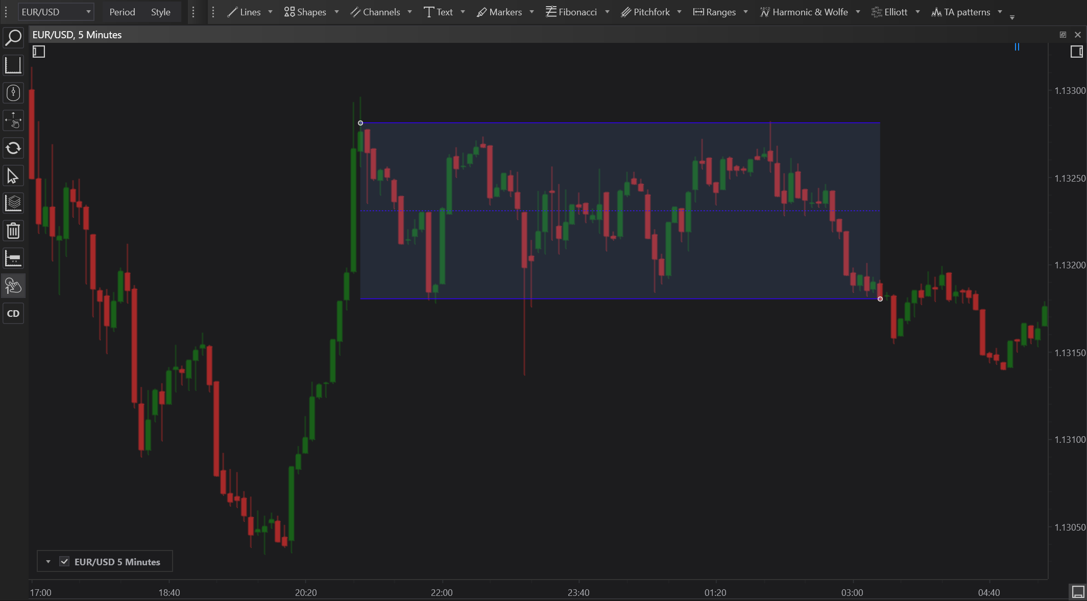The Horizontal Channel tool in FinStudio is an essential technical analysis tool that emphasizes horizontal price levels where the market has shown repeated resistance or support. This tool is particularly useful in identifying range-bound markets and key areas where price movements have historically consolidated.