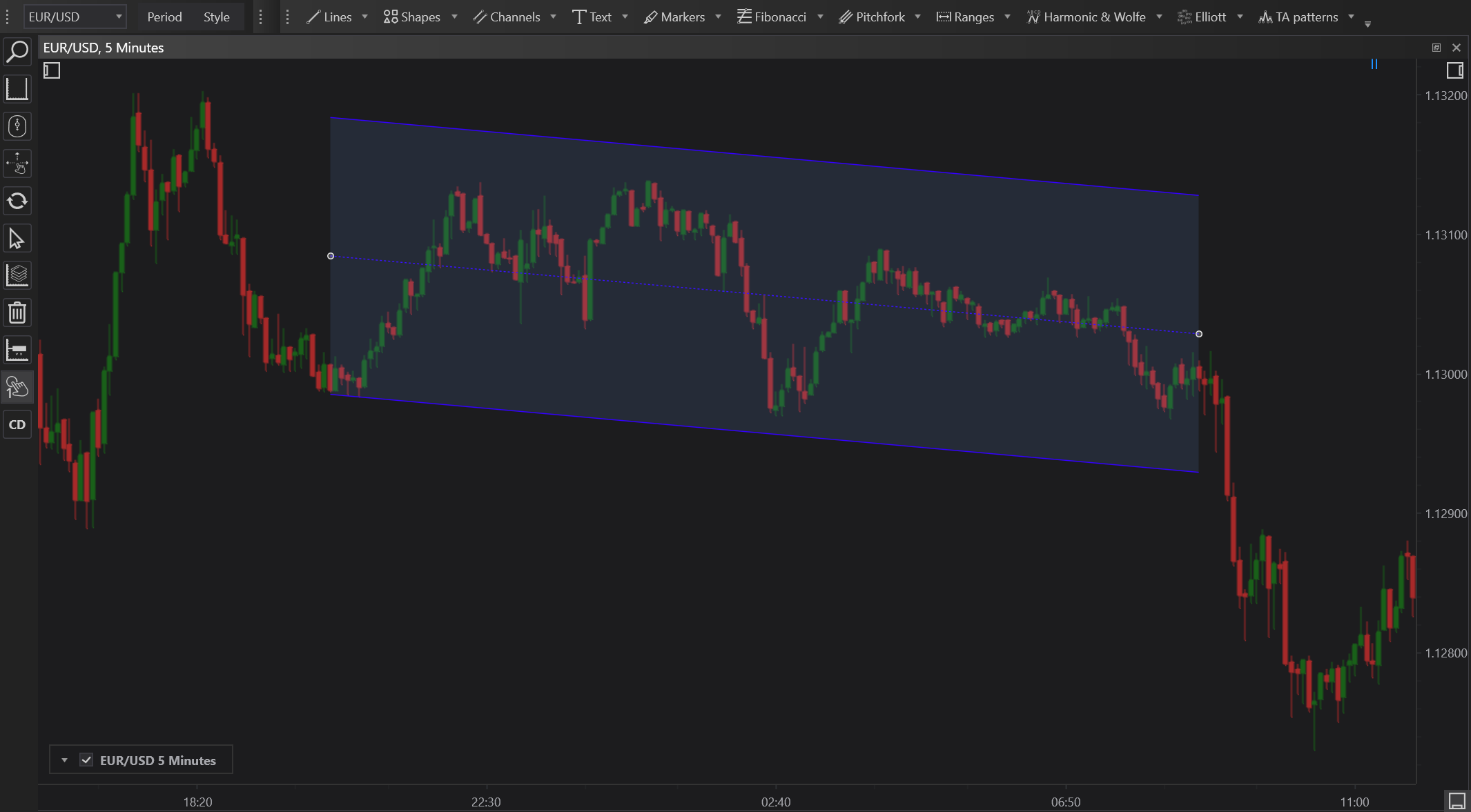 - Initial Placement: Click and drag on the chart to select the range over which you want the regression channel to apply. This typically involves choosing a significant time period or price movement.