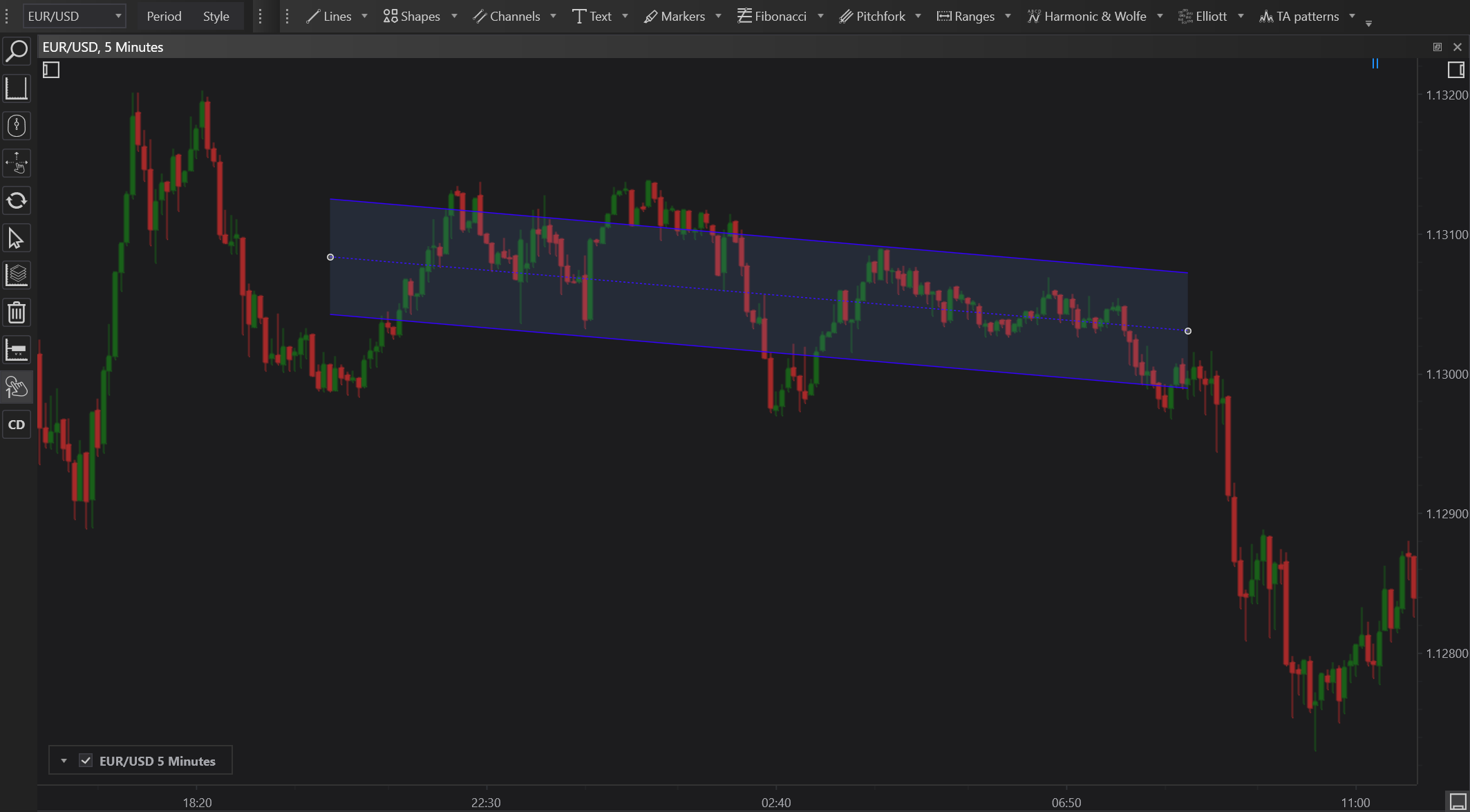 - Customization: Modify the appearance, including line thickness, color, and opacity, to differentiate the channel from other chart elements.