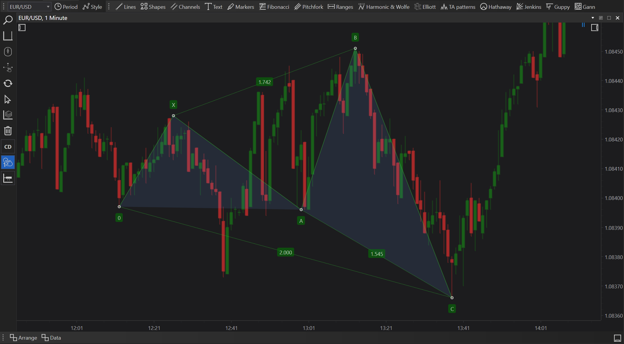 4. Adjustment and Optimization: Modify the points if necessary to align the pattern with actual market data, ensuring the pattern correctly captures the intended price movements.