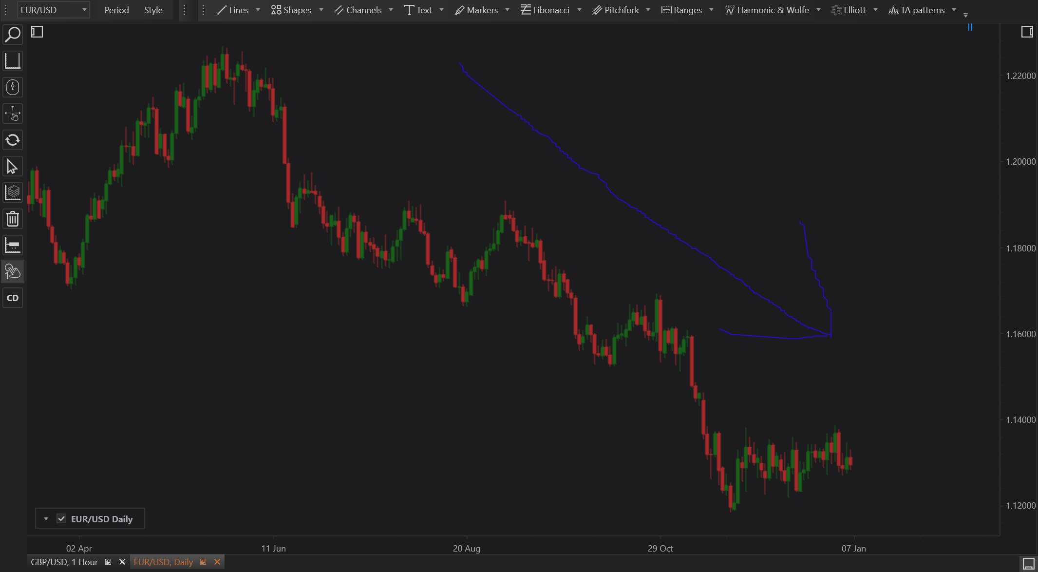 - Draw on the Chart: Click and hold the mouse button to start drawing on the chart. Move the mouse to create freeform lines or shapes.