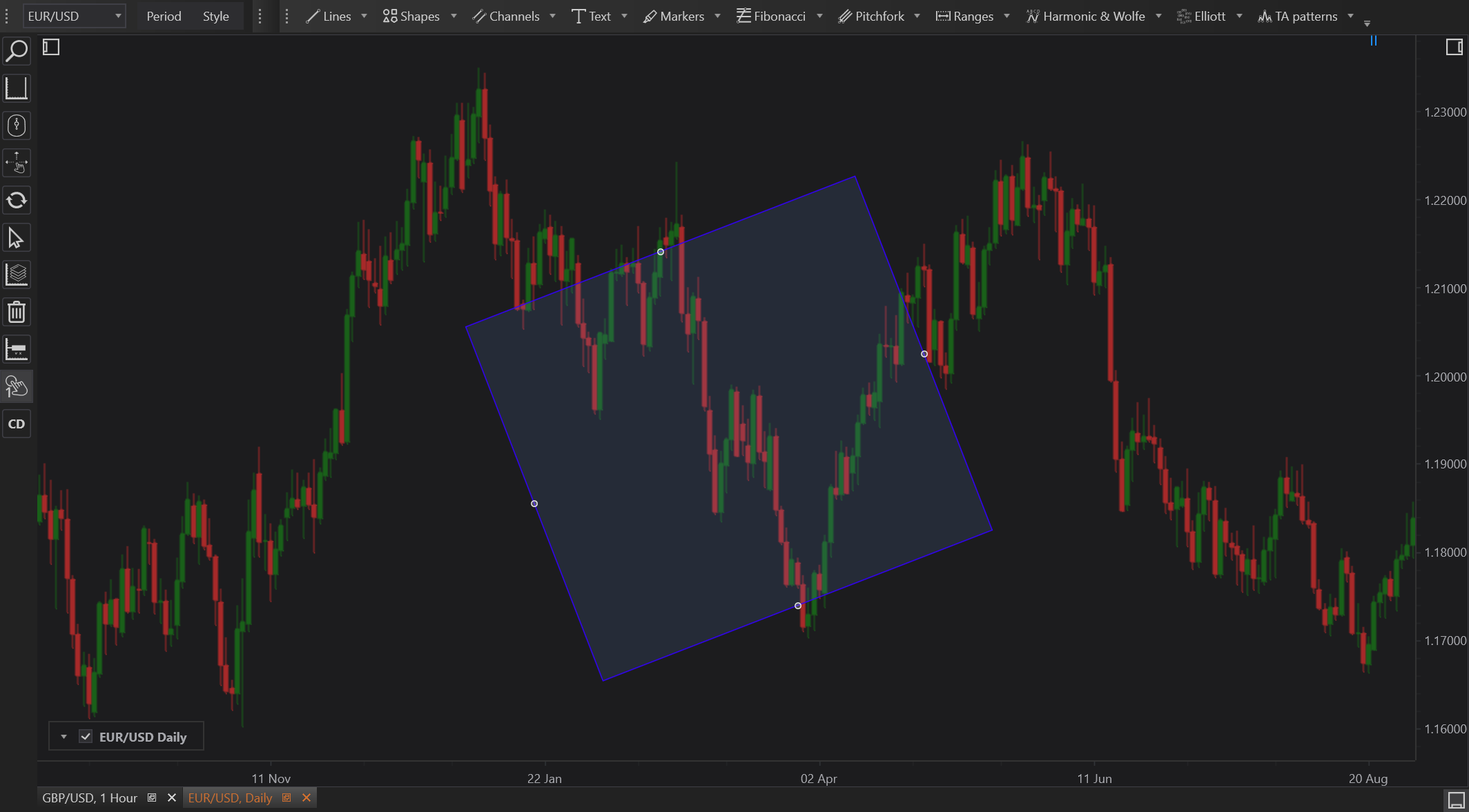 - Diagonal Highlighting: Ideal for encapsulating price patterns that follow a tilted angle, such as ascending or descending channels.