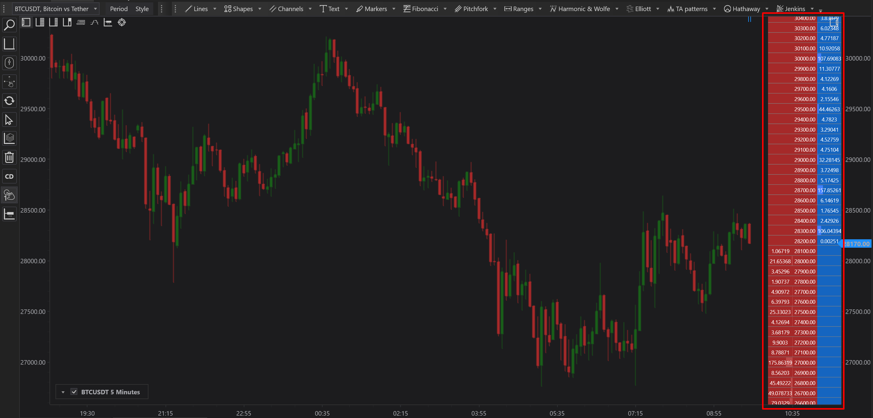 - The grid updates in real-time, reflecting live changes in market depth. This dynamic update allows traders to see how order volumes at various price levels evolve as market conditions change, providing insights into potential price movements.