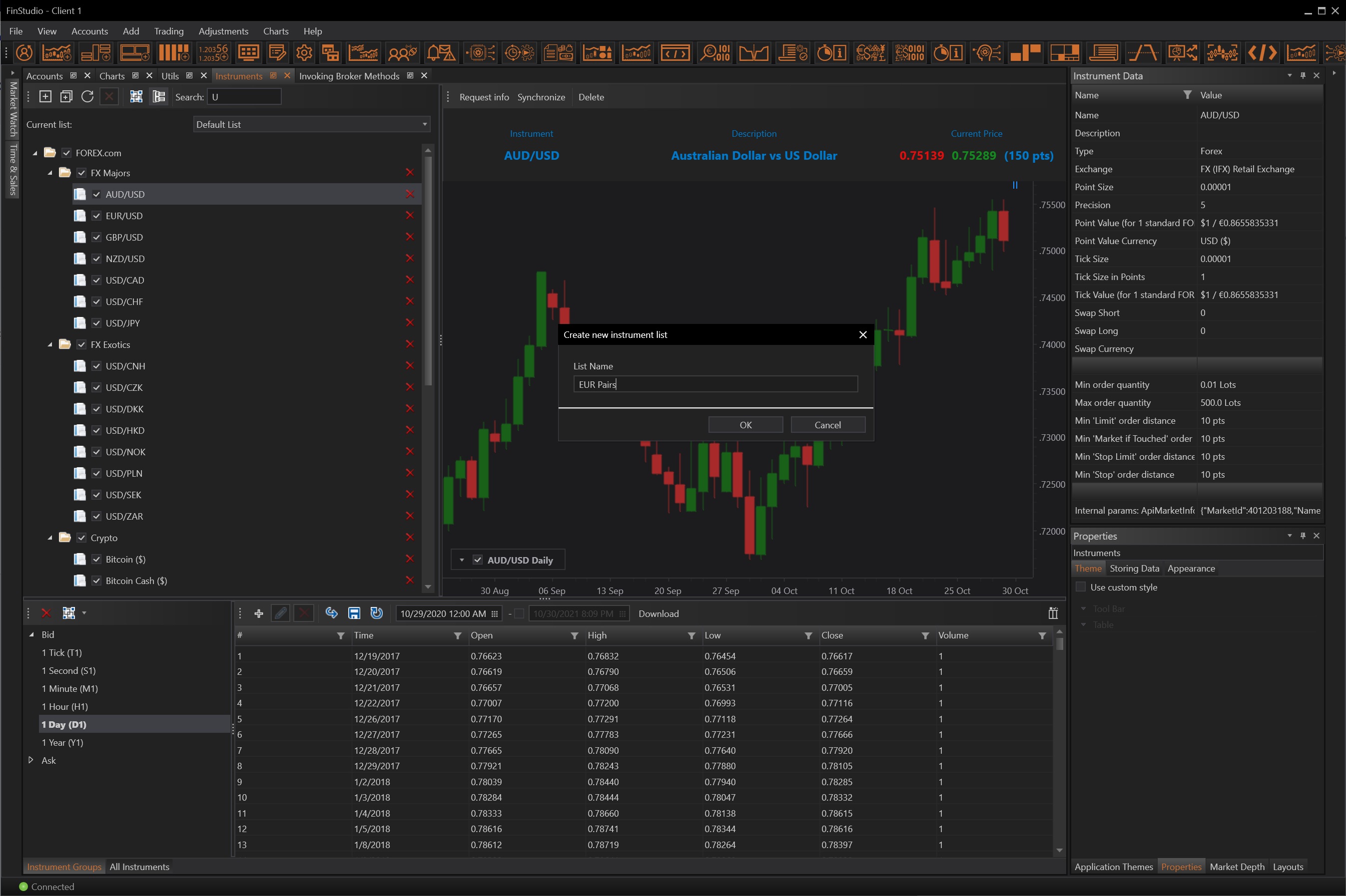 Instrument lists offer a flexible way to personalize and organize financial instruments into tailored lists and groups. To begin, users need to create a new instrument list, which serves as a foundation for further customization and categorization according to their preferences. This capability allows users to create a highly personalized and efficient trading environment.