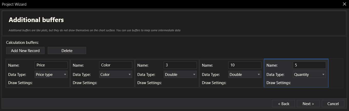 Users can add or delete additional calculation buffers. Buffers are used for intermediate data storage during calculations.