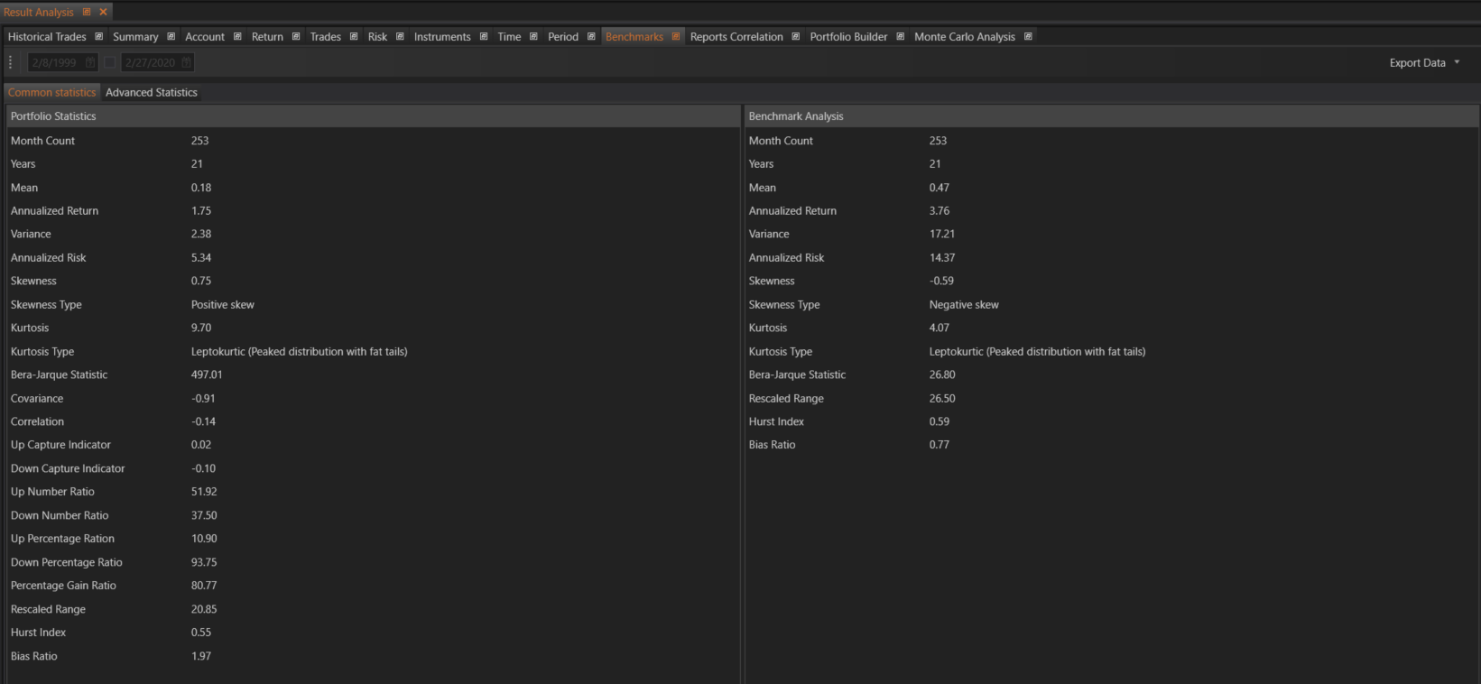 The Common Benchmarks section is designed to give traders a comprehensive view of their strategy's performance in relation to a benchmark. By leveraging these detailed insights, traders can make data-driven decisions, refine their strategies, and optimize their trading outcomes.