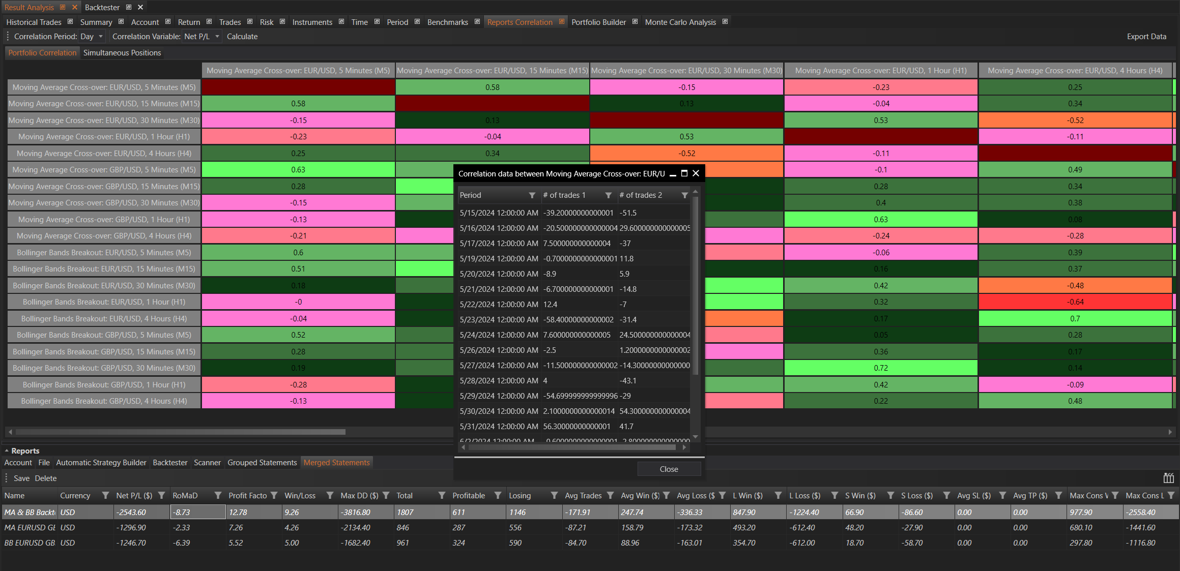 - Risk Management: By analyzing correlations, traders can identify and manage risks associated with having highly correlated strategies that might lead to increased volatility in their portfolios.
