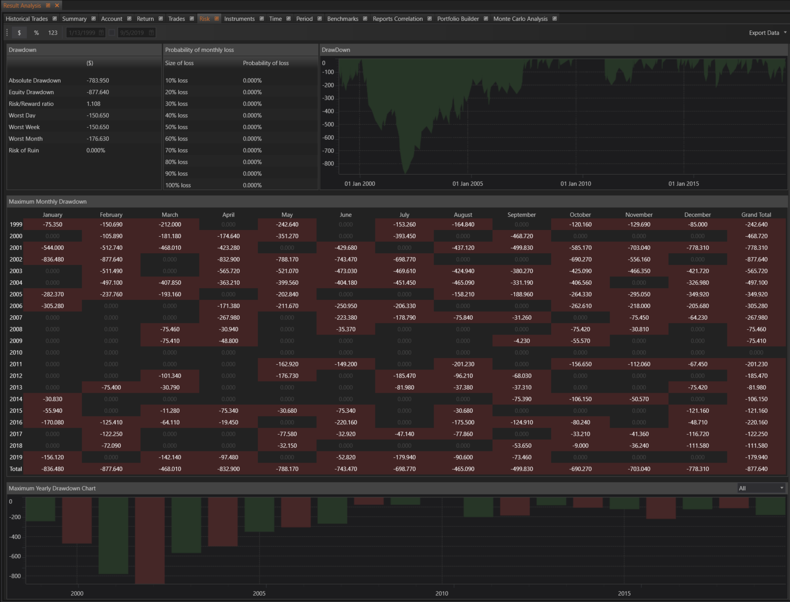 - Maximum Yearly Drawdown Chart: Graphics showing the maximum drawdown for each year.