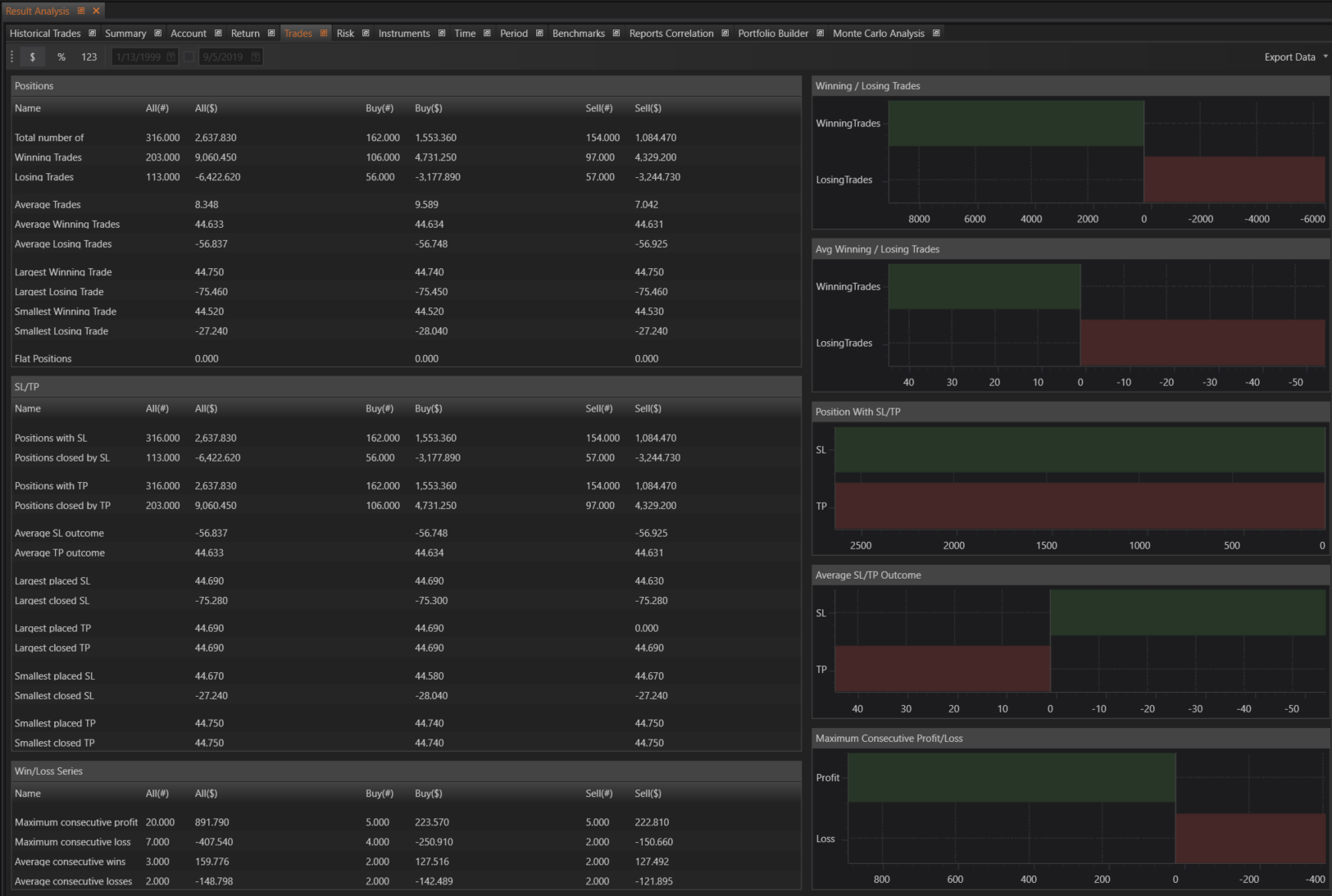 - Maximum Consecutive Profit: The maximum profit from consecutive winning trades.