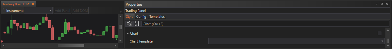 • Traders can adjust the Chart settings by navigating to the Chart section within the Style Tab of the Tradingboard Trade Panel. This section is specifically designed to be straightforward, focusing solely on the selection of the chart template.