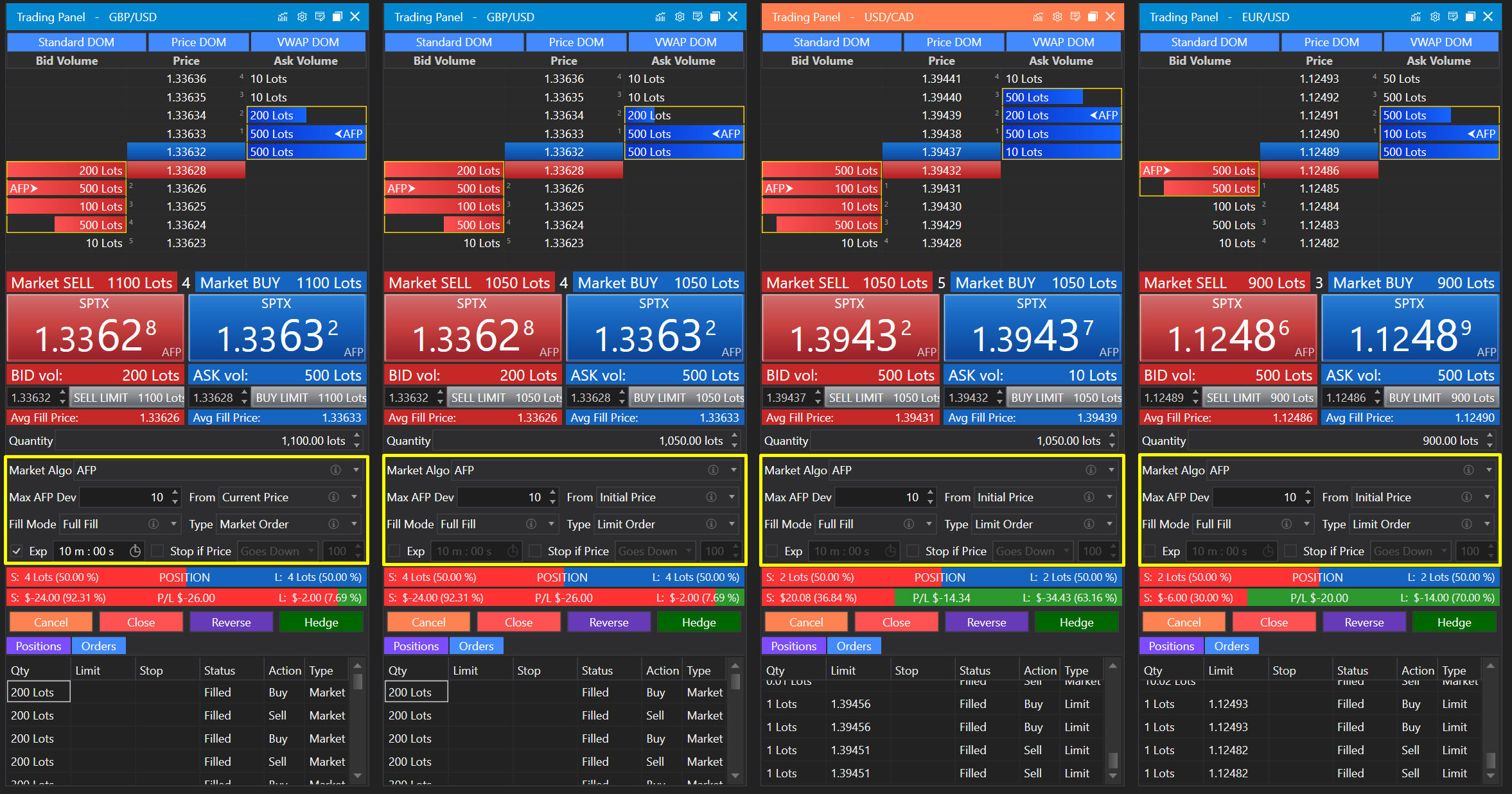 Traders can manually pause, resume, or cancel running AFP orders at any time. -