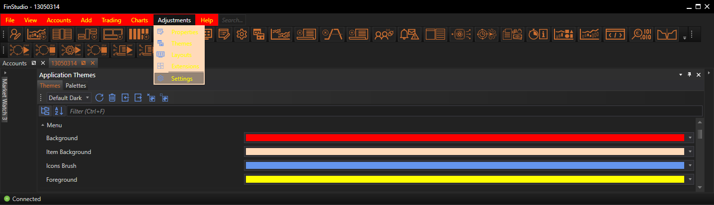 Customizing the Menus properties in FinStudio's Application Themes module is a powerful way to enhance the functionality and visual cohesion of the trading platform. By carefully selecting colors and styles for the menus, users can create an inviting and efficient interface that facilitates easy navigation and improves the overall trading experience. These settings allow for a high degree of personalization, ensuring that the platform not only meets the functional requirements of trading but also reflects the personal style and preferences of the user.